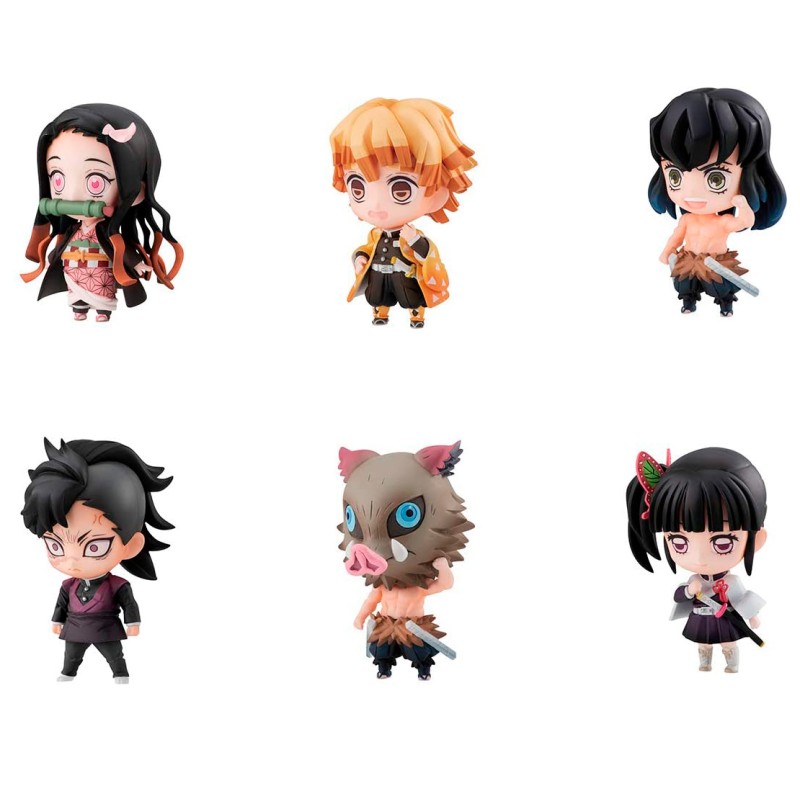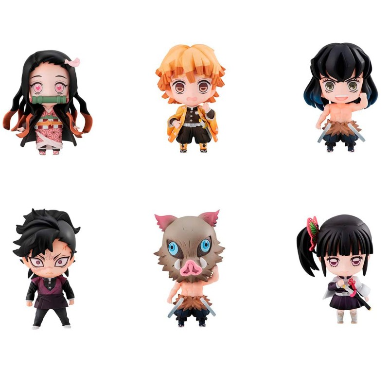 This set includes Nezuko Kamado, Zenitsu Agatsuma, Inosuke Hashibira (No Mask), Genya Shinazugawa, Tsuguko Kanao Tsuyuri and includes an interchangable head (Inosuke Hashibira Mask).